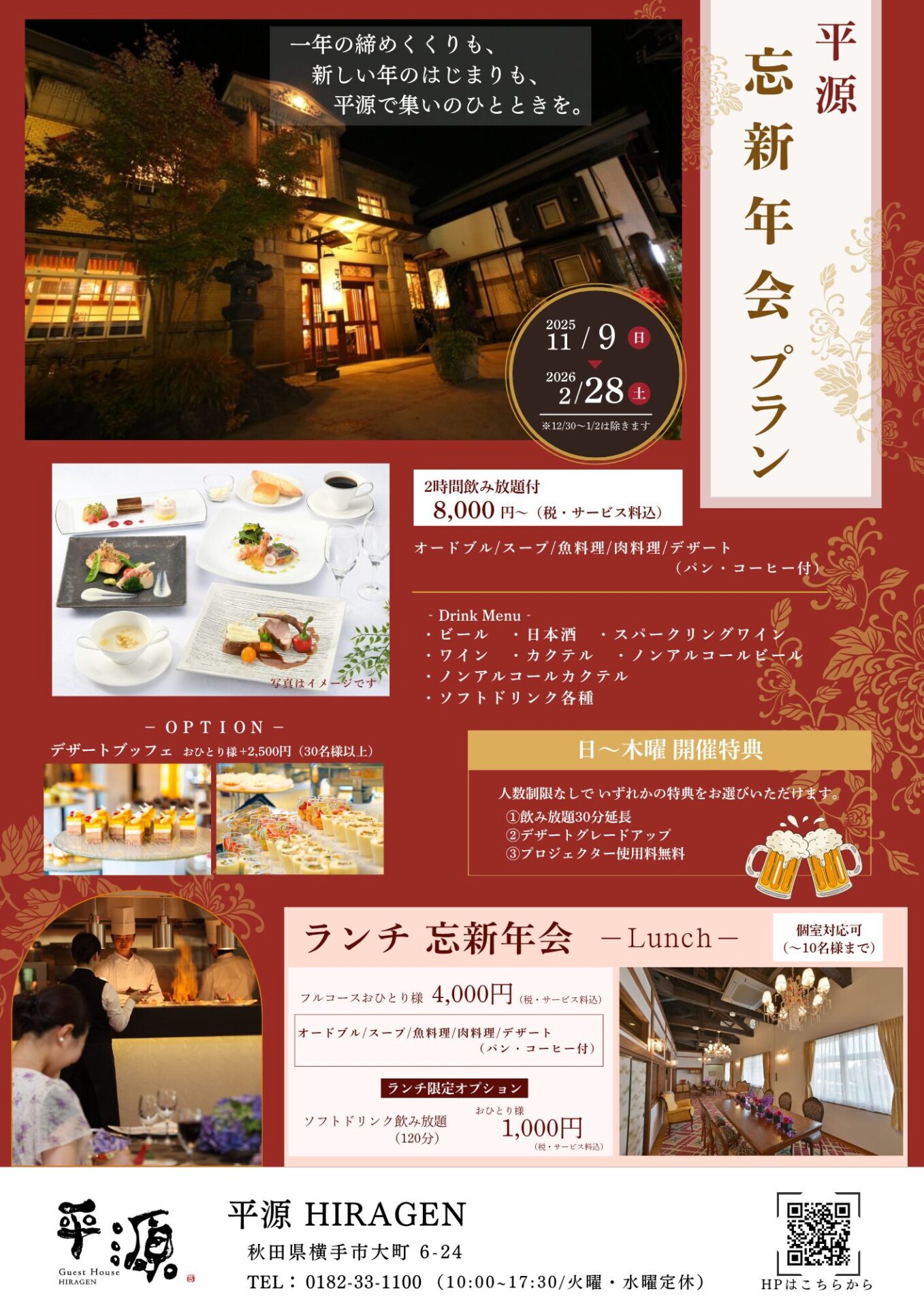 忘新年会プランのご案内 〔2月28日まで〕
